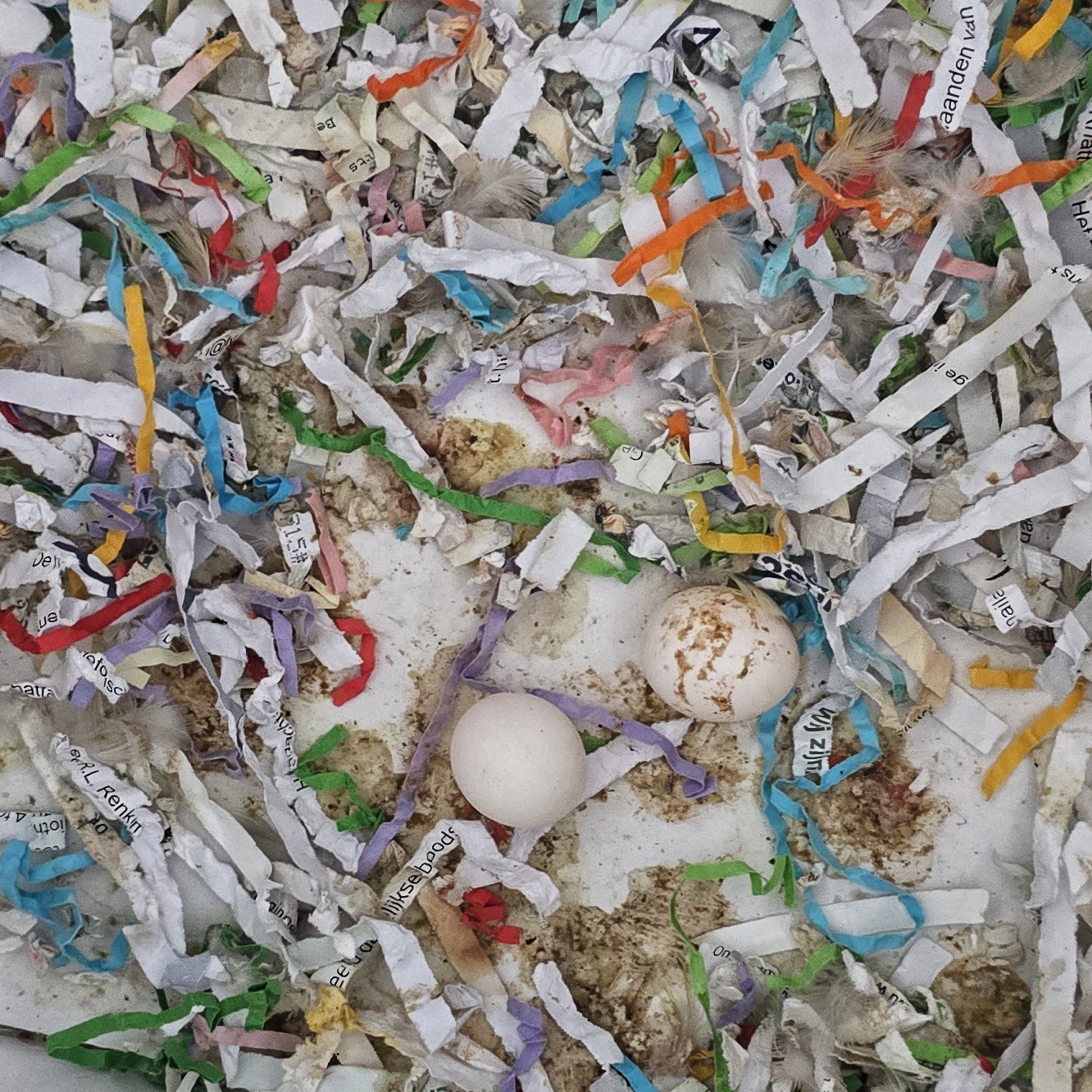 We hebben nu 2 eitjes. Meer mag ze niet hebben. Als er meer komen heb ik valse eitjes liggen.
